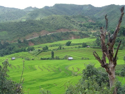 ขณะขับรถขึ้นไปสองฝั่งลำน้ำมีสภาพเป็นไร่  นา สลับกับป่าไม้   หลาน