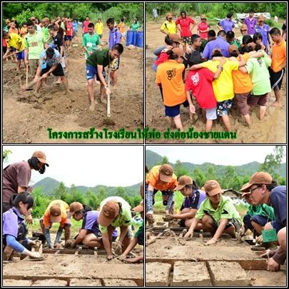 นักเรียนที่มีจิตอาสาจากโรงเรียนพรหมานุสรณ์ ต้นกล้าเพชรบุรี ได้ร่วมใจกันช่วยปรับพื้นที่และเตรียมก้อนดินไว้สำหรับก่อสร้าง