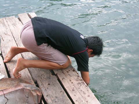 เมื่อรู้ว่าไม่ได้เบ็ดคืนแน่แล้ว .. ก็มานั่งคร่ำครวญอย่างที่เห็น .. น่าสงสารเนอะ .. ส่วนเจ๊กีกี้ .. ก็หลบไปอยู่ท้ายแพ .. ไม่กล้าเข้าใกล้น้าแล้วอ่ะ .. แบบว่า .. ขอไปเก็บภาพประทับใจใส่กล้องดีกว่า .. ไม่สนใจใครแระ ..
