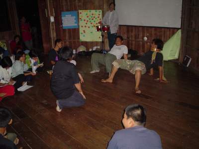 ก็มีกิจกรรมรอบกองไฟ ซึ่งนักเรียนจะถูกแบ่งออกเป็นสามกลุ่ม