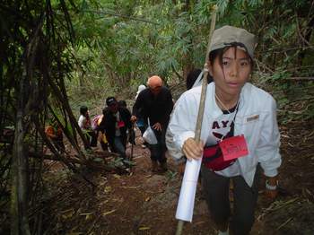 สมาชิกที่เหลือพร้อมกับนักเรียน ก็ร่วมเดินป่าฟันฝ่าไปด้วยกัน