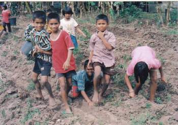 . สภาพของโรงเรียนเป็นโรงเรียนระดับประถมศึกษาเล็ก ๆ อยู่ในหมู่บ้านที่ความเจริญยังมาไม่ถึง เพราะอยู่ติดชายแดน มีอาคารเรียนสองหลังโทรม ๆ และเมื่อสอบถามถึงงบสนับสนุนการศึกษาที่ได้รับจากภาครัฐ ก็ได้รับคำตอบว่า "ลำพังเงินจากภาครัฐที่มาอุดหนุน เมื่อเทียบกับจำนวนนักเรียนรายคนต่อปี น้อยนิดเหลือเกิน ค่าอาหารกลางวันสำหรับเด็กแต่ละคนอยู่ในอัตรา ห้าสลึง/คน ส่วนค่าน้ำ ค่าไฟ และค่าใช้จ่ายเบ็ดเตล็ดรวมอยู่ในเงินก้อนเดียวกัน เมื่อไม่เพียงพอกับค่าใช้จ่าย ต้องเจียดเงินเดือนของตนเองลงไปสบทบ"