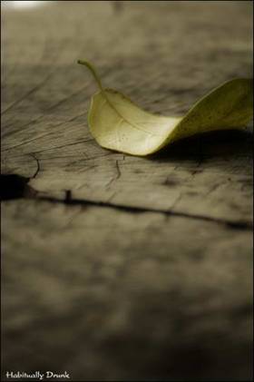ฉันเป็นเพียงแค่ใบไม้ใบหนึ่งที่ผลิ ยอดอ่อนบนปลายก้าน แย้มกลีบใบเมื่อได้รับแสงอาทิตย์ .. ค่อยๆ เติบโตจากอาหารที่ปลายรากแก้วดูดส่งขึ้นมาจากผืนดิน .. เบิกบาน เขียวชอุ่ม .. รอวันเติบโตเป็นใบไม้เต็มตัว เพื่อรับหน้าที่ปรุงอาหารหล่อเลี้ยงกิ่ง ก้าน ดอก .. ผสมผสานเป็นหนึ่งเดียวกับทุกส่วนของต้นไม้ .. ฉันเฝ้ารอวันที่จะได้ทำหน้าที่อันยิ่งใหญ่ที่ติดตัวฉันมาตั้งแต่กำเนิด .. และแล้ว .. มันก็มาถึง .. ช่างน่าภาคภูมิใจเสียนี่กระไร ฉันชูใบรับแสงอาทิตย์ร้อนแรงที่สาดส่อง คลอโรฟิลด์ในตัวฉีดพล่าน .. สังเคราะห์อาหารแล้วส่งต่อไปตามส่วนต่างๆ ของต้น .. ส่วนต่างๆ ที่ให้กำเนิดฉัน .. หน้าที่อันยิ่งใหญ่ที่ฉันเฝ้าทำวันแล้ววันเล่า .. วันแล้ววันเล่า .. จนความเขียวชอุ่มในตัวฉันเปลี่ยนเป็นสีเหลือง คลอโรฟิลด์ที่เคยพลุ่งพล่านทุกครายามต้องแสงร้อนแรง .. มาวันนี้แทบไม่มีเหลือ .. แม้ฉันยังอยากทำหน้าที่อันยิ่งใหญ่ เพื่อส่วนต่างๆ ที่ให้กำเนิดฉันเพียงใด หากแต่ .. .. .. .. .. ทุกส่วนเสี้ยวของต้นที่เคยผสานเป็นหนึ่งเดียวกับฉัน .. ดูจะปฏิเสธการมีฉันอยู่ร่วม ทั้งที่เราเคยอยู่ร่วม .. "วัฎจักรมันเป็นเช่นนี้ .. เด็กน้อย " เสียงแผ่วที่แว่วมาตามสายลม .. ก่อนที่ฉันจะเริ่มรู้สึกเจ็บที่ปลายขั้ว .. ความเจ็บปวดที่แผ่ซ่านดั่งถูกคมกรีด .. ผสมผสานกับความว่างโหวงที่ถูกแรงโน้มถ่วงดึงดูดลงผืนดิน ฉันคงต้องตอบแทนผืนดินอีกสินะ เพราะการเติบโตและดำรงอยู่ของฉันก็เคยได้มาจากผืนดินเหมือนกัน .. ยินดี .. หากซากร่างที่ไร้คลอโรฟิลด์จะยังพอมีประโยชน์อยู่บ้าง .. ฉันก็ยินดี .. แต่ในชั่วแวบฉันยังอดหวังไม่ได้ว่า .. คราวหน้า .. ฉันจะได้เกิดมาเป็นรากแก้ว .. กิ่ง หรือก้านบ้าง เพื่อหน้าที่อันยิ่งใหญ่ของฉันจะคงอยู่ยาวนานตราบลำต้น .. ฉันหวัง ..