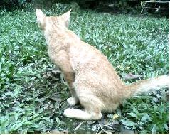แต่เมื่ออยู่กันมา เจ้าเหมียวที่เคยคิดว่าเป็นนังหนูเหมียว ก็กลายเป็นตัวผู้ให้เห็นเสียอย่างนั้น รื่นเริง ไม่กลัวใคร กระโดดเกาะขาให้ลากไปมาทั่วบ้าน ไม่ยอมปล่อย เปลี่ยนจากลูกแมวไปเป็นลูกหมาให้หมาเลี้ยง และกลางคืนก็ขึ้นมานอนกับคนได้ทั่วทุกห้อง.. ความรัก ความเมตตา เอ็นดู ความคุ้นชิน คุ้นเคยที่มีให้กัน เจ้าเหมียวได้รับความรักล้นเหลือ จึงเชื่อว่ามันเคยได้ทำบุญไว้มากนัก แม้นต้องเกิดเป็นสัตว์..ทุกคนก็ยังรักมันมากมาย มีบ้านอยู่ มีกิน มีใช้ อิ่มหมีพีมัน อ้วนท้วนสมบูรณ์ และ...เมื่อวาน...มันก็รอดตาย...ด้วยบุญของมัน... ที่คนเข้าไปช่วยทัน แมวมี ๙ชีวิต คนว่าไว้อย่างนั้น ที่เป็นชีวิตที่ ๒ ของมันหรือ ? ทิกิ เพิ่มเติมไว้เมื่อ ๑๓ ๑๖ นาฬิกา อาทิตย์ ๒๐ พฤศจิกายน ๒๕๔๘ ห้องคอมพ์เรือนนนทบุรี