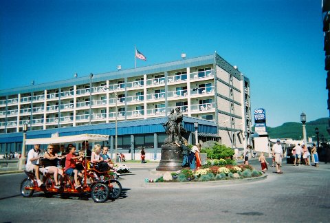 เขามีรถจักยานให้เช่า แต่แปลกจากบ้านเรานิดหน่อย นั่งได้หลายคน เอาถีบไปตามชายหาดทะเล ช่วยกันเรา พร้อมใจกันจริงๆ