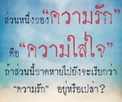 ส่วนหนึ่งของความรัก คือการที่เราใส่ใจ ใส่ใจลงไปในที่ว่างของอีกใจหนึ่ง เพื่ิอเติมเต็มส่วนที่ขาดหาย แล้วทั้งสองใจ จะมีกันและกัน หรือใจฉันและเธอ จะรวมเป็นหนึ่งเดียว (ใส่ใจอย่างเดียวก็พอ ตับไตไส้พุงไม่ต้อง คอเรสตอรอลมันเยอะ)